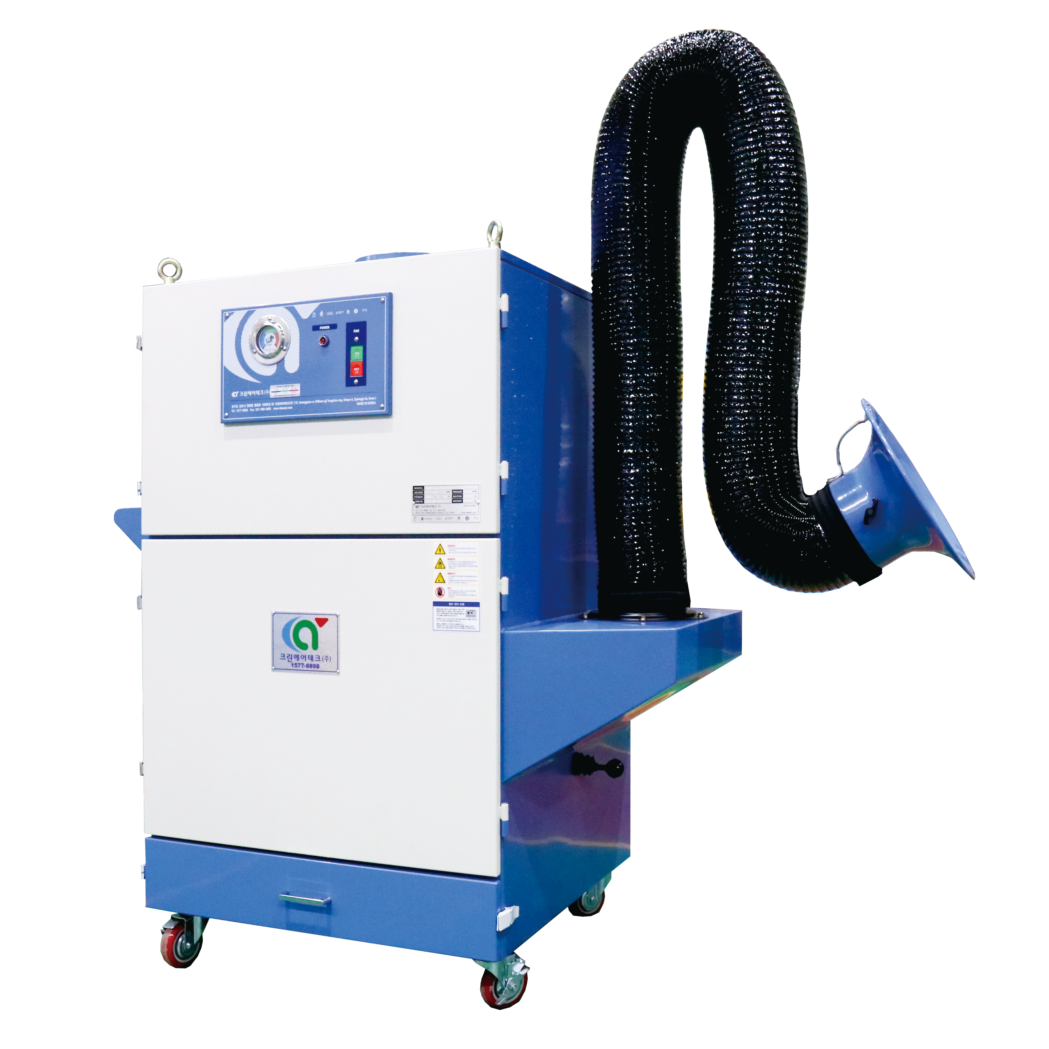 배관공사가 어렵거나 작업공간이 일정하지 않은 환경에서 사용되는 이동식 백필터 집진기입니다. 연마, 분쇄, 드릴, 절단, 절삭, 재단, 파쇄, 그라인딩, 샌딩, 분체투입, 혼합 등 다양한 작업에서 발생하는 분진을 효과적으로 제거할 수 있습니다. 이 집진기는 심플한 구조로 잔고장이 적으며 유지보수가 용이하고 가격대비 성능이 좋아 보편적으로 많이 사용됩니다.